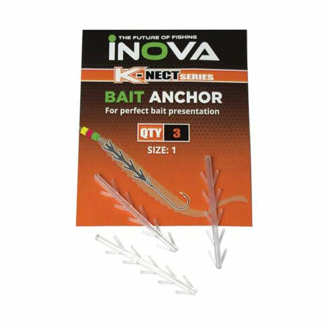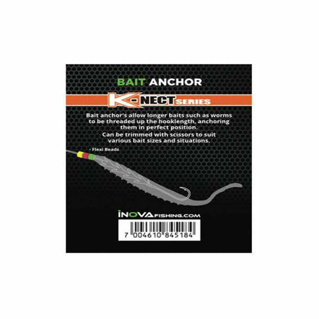 The INOVA Bait anchor’s allow longer baits to be threaded up the hook length, anchoring them in perfect position. Can be trimmed with scissors to suit various bait sizes and situations.