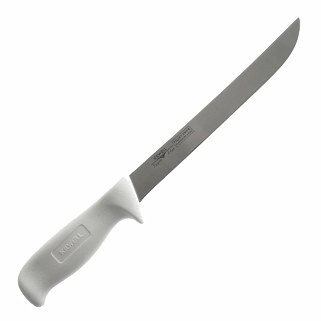 The Wide Whitelux filleting knife from Kilwell. This is the classic White Kiwi filleting knife. Packing a wide, sharp, stiff 210mm blade, this fillet knife makes quick work of any fish filleting task.