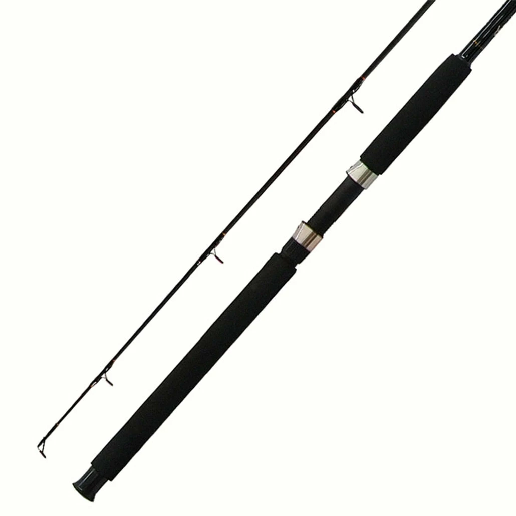 Black Shadow rods are designed as entry level, to suit the occassional angler. Made with a fibreglass blank with black frame aluminium oxide guides. This Black Shadow rod is a 2.4m 2 piece GP spin rod with 55 to 85g cast weight.